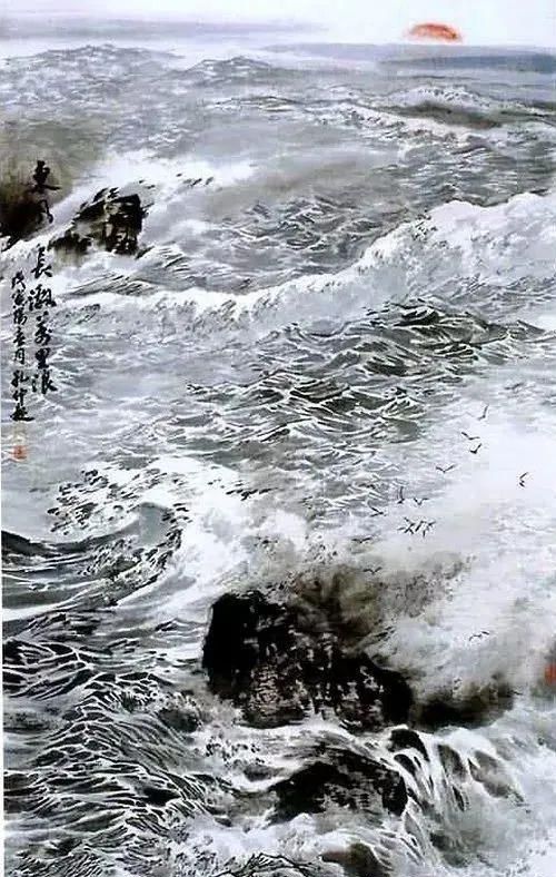 他画的江河湖海雄健奔放 具有新意 可供学习参考